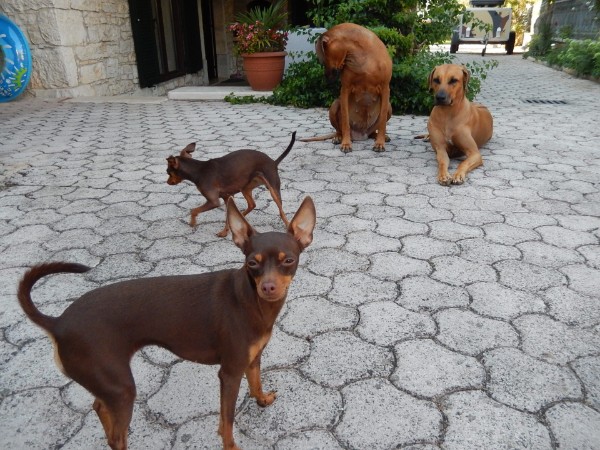 Da sind es nur vier. Manchmal spielen hier ca. 8 Hunde, SUPER!!! Unsere Principessa ist dann immer total fertig.