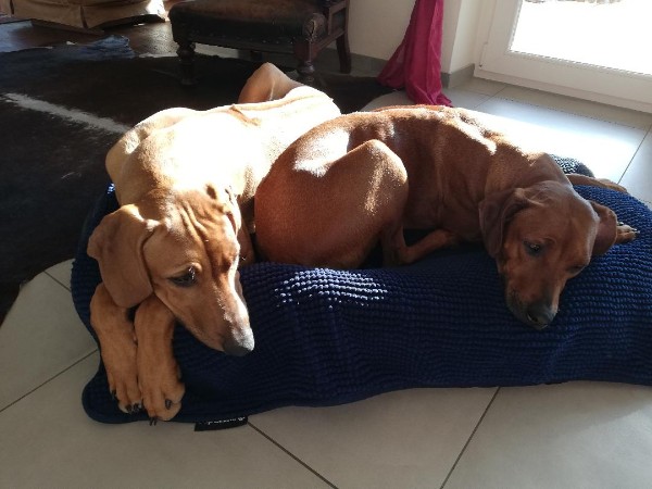 SAM, auch genannt DAS PHANTOM (man beachte seine zweierlei Gesichtsfarben ;-)) zieht zu Birgit und Jens nach Eggenthal ins Allgäu. Auf ihn wartet schon Ridgeback-Dame TIMBER... die beiden werden sich ganz super verstehen :-)
